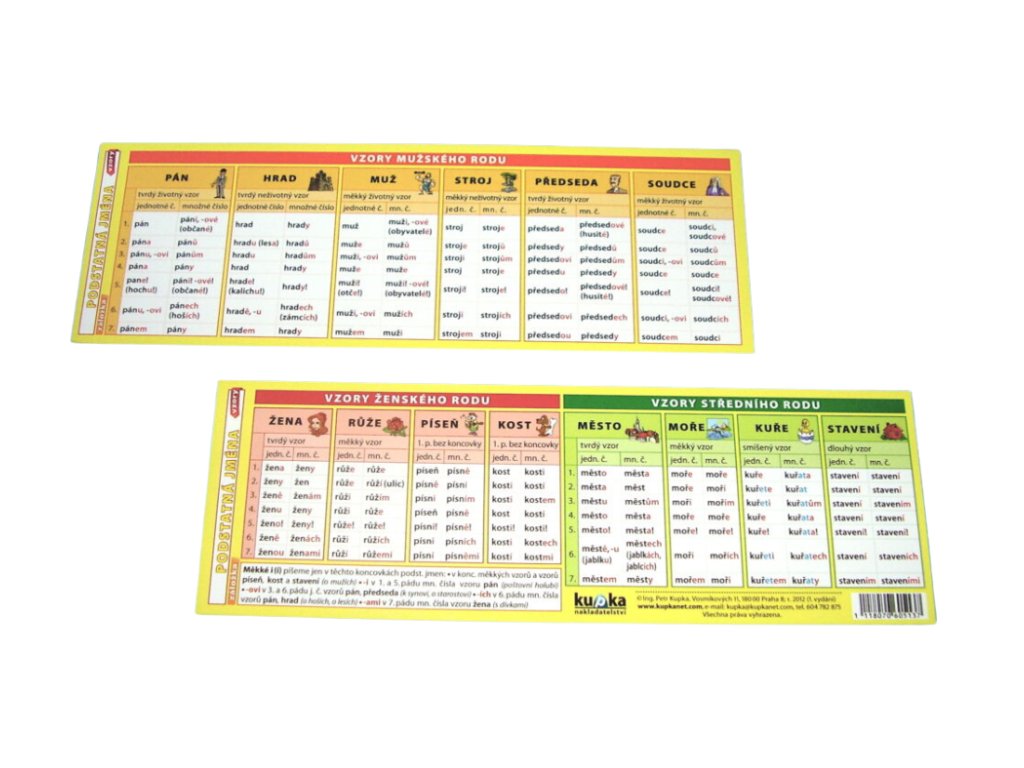 Díky přehledným tabulkám a příkladům si žáci snadno zopakují skloňování a pravidla české gramatiky – ideální pomocník do školy i pro domácí přípravu 📖🧠.