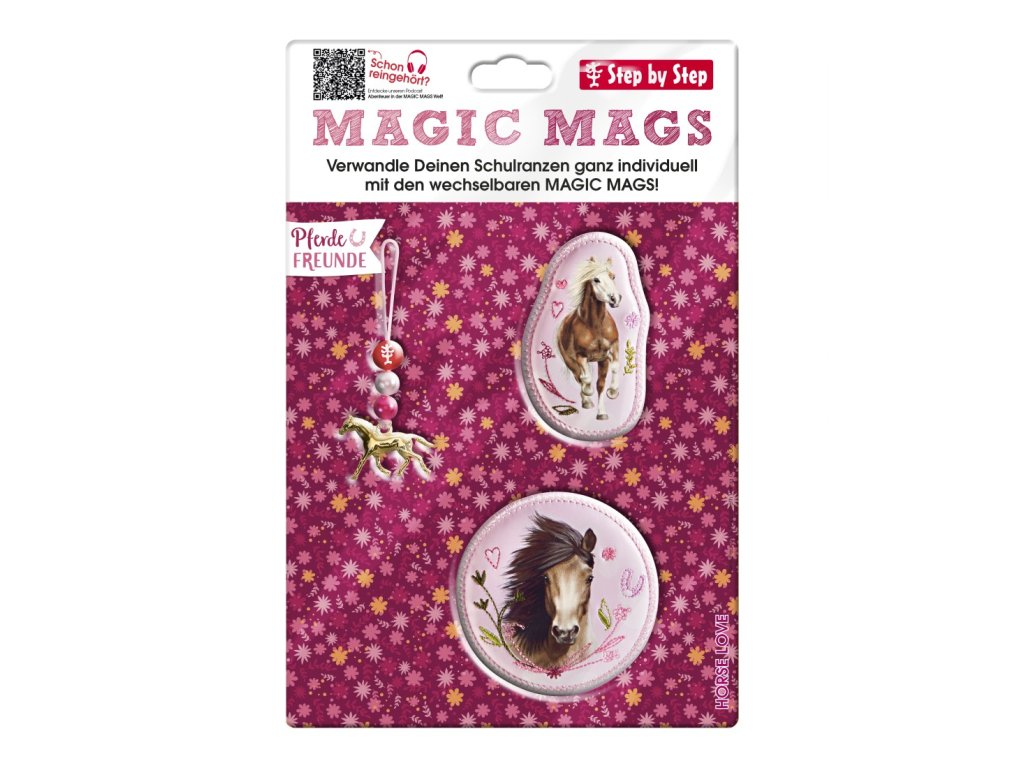 Pro malé milovníky koní 🐎✨ je tu doplňková sada MAGIC MAGS značky Step by Step v limitované edici Spiegelburg Horse Love. Díky magnetickému systému lze motivy jednoduše měnit a aktovku nebo batůžek tak každý den proměnit v originál.