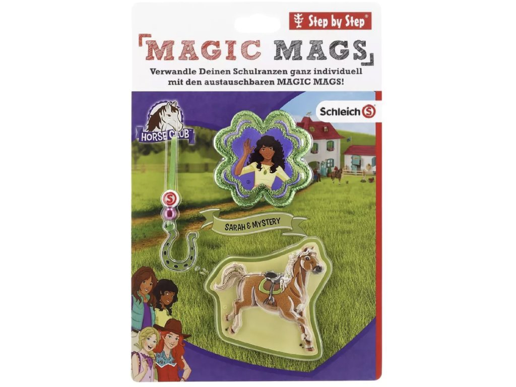 Magic Mags Schleich Sarah & Mystery jsou originální magnetické ozdoby, které vznikly ve spolupráci se značkou Schleich a jsou kompatibilní se školními aktovkami a batohy s integrovanými magnetickými plochami.