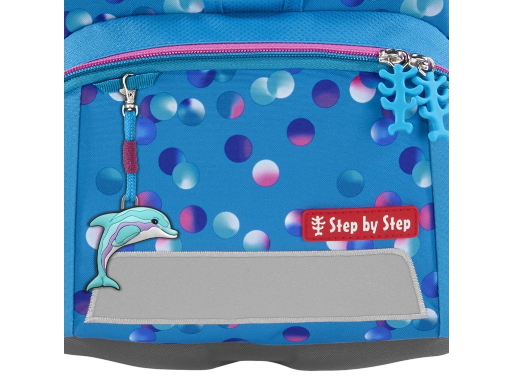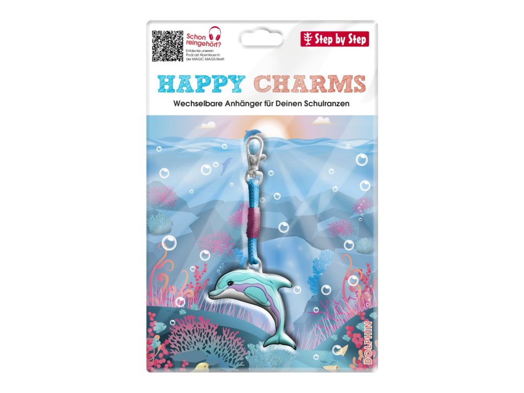 Přívěšek Step by Step Happy Charms Dolphin přináší kousek mořské hravosti do školních dnů 🐬🎒. Je ideální pro děti, které mají rády zvířata a chtějí si svou aktovku nebo batůžek ozdobit originálním detailem.