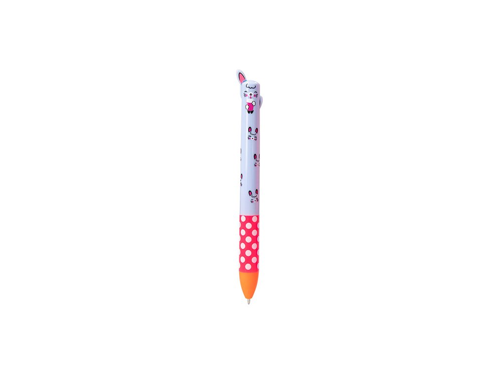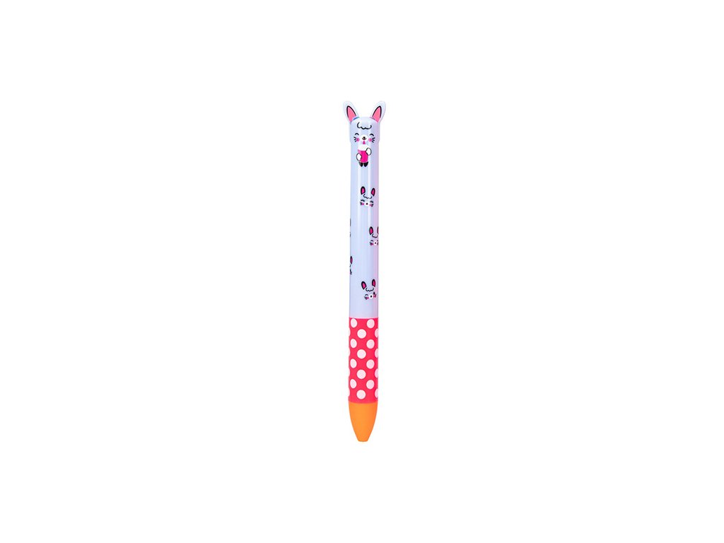 Jedinečná propiska s barevným motivem králíka. Při zmáčknutí ouška píše pero černě nebo modře. Nesmí chybětv penálu žádné školačky. Kvalitní propiska zajišťuje snadné a bezproblémové psaní.
