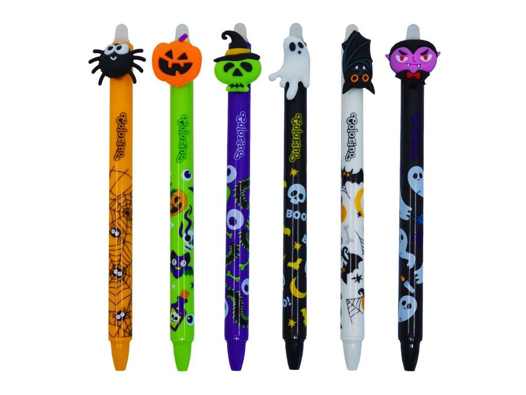 Gumovací pero Colorino Halloween. Tepelnou reakcí smazatelné, barva náplně: modrá.