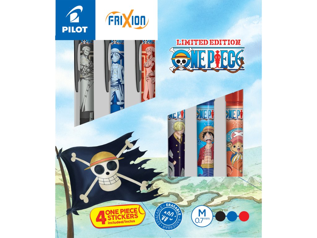 Legendární gumovací pera Pilot FriXion Ball a Clicker přichází v limitované edici s motivem oblíbeného anime One Piece.