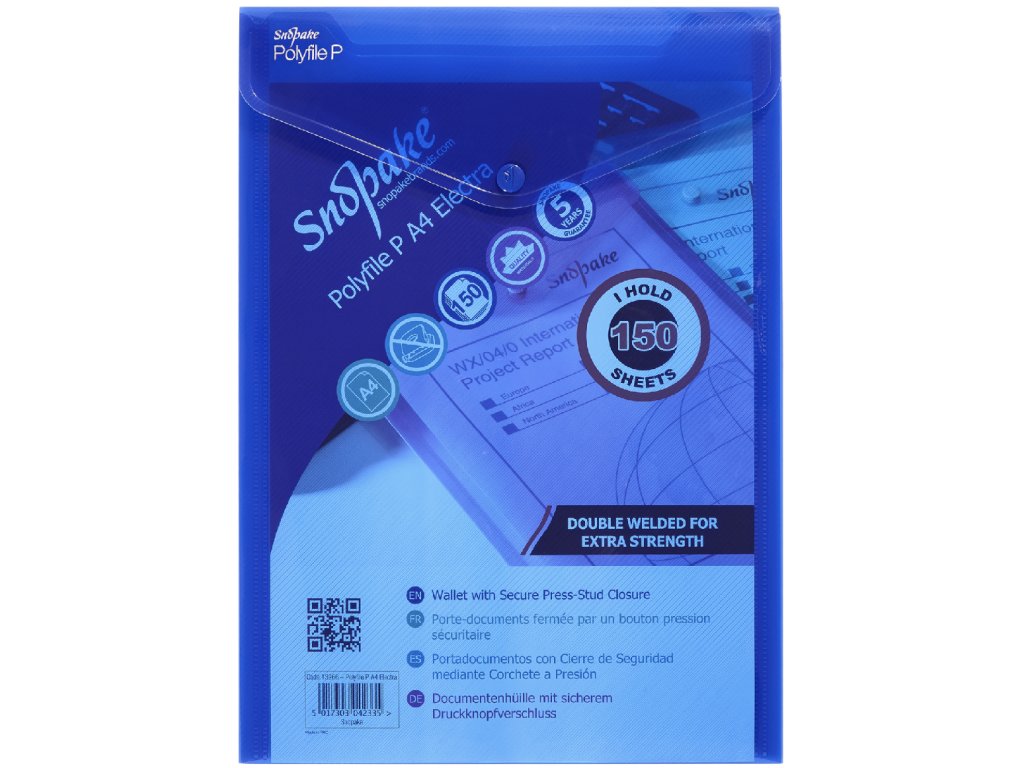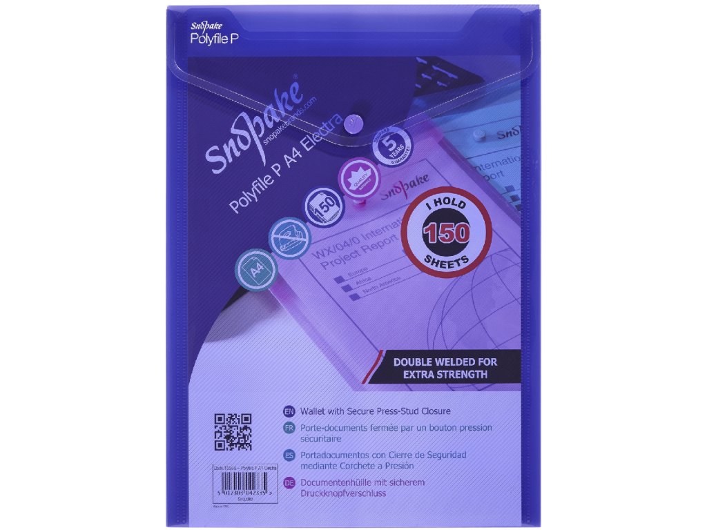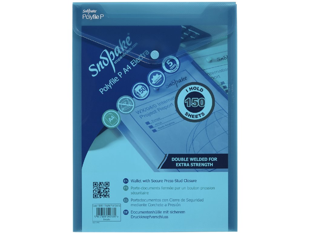 📁 Stylová a praktická! Kapsa s drukem Snopake Polyfile P ve formátu A4 je skvělým pomocníkem pro školáky, studenty i kancelářské profíky. Díky zavírání na druk a pevnému plastu budou vaše dokumenty vždy chráněny.