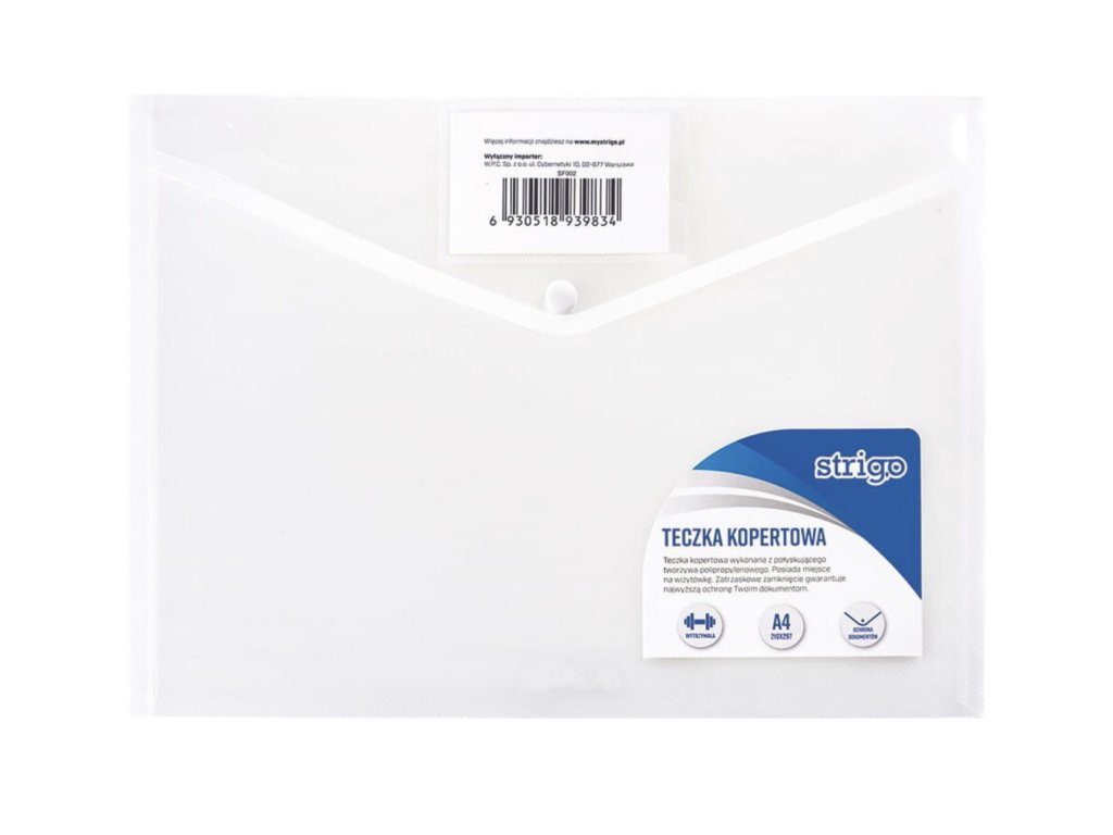 Horizontální obálka s drukem je praktickým pomocníkem pro uchování dokumentů formátu A4. Díky zapínání na druk zůstanou papíry bezpečně uvnitř a nevyklouznou ani při přenášení.