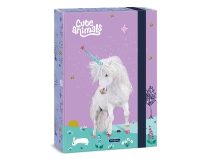 Pevný box na sešity A4 z kolekce Ars Una Cute Animals – jednorožec s celoplošným potiskem. Vyroben z tvrdého lamino kartonu (tl. 7 mm), uzavírání pomocí široké pružné gumičky....