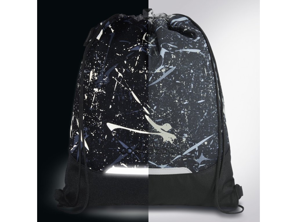 Dominantou pytle jsou velké reflexní prvky, které zvyšují viditelnost za šera, tmy i deště. Skvělá volba pro bezpečnější cestu do školy, na sport nebo domů.