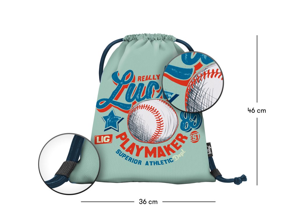 🧢 Ať už vyrážíš na tělocvik, trénink nebo ke kamarádovi, se sáčkem Baseball Lucky budeš vždy připraven!
