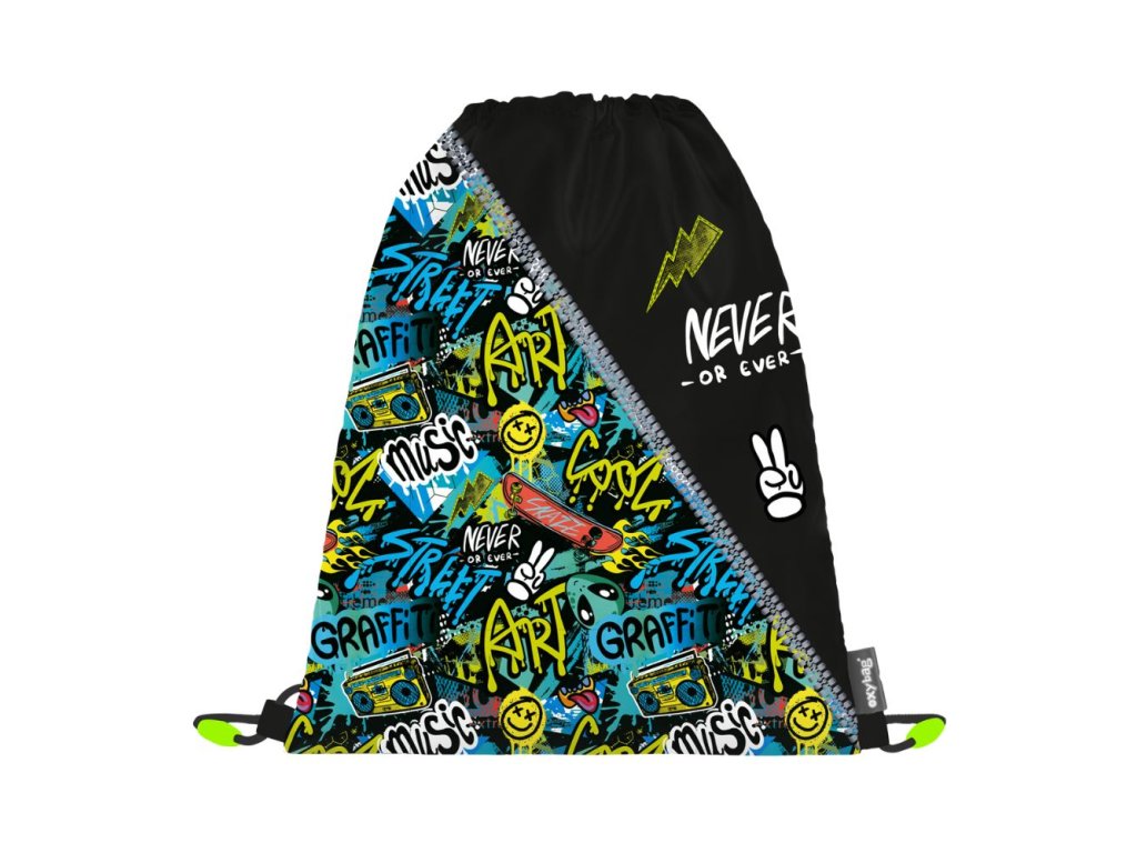 Sáček je ideální na přezůvky, cvičky nebo lehké sportovní oblečení. Díky jednoduchému stažení šňůrek se snadno uzavírá a děti ho mohou nosit na zádech jako lehký batůžek. Lze ho také připevnit ke školnímu batohu.