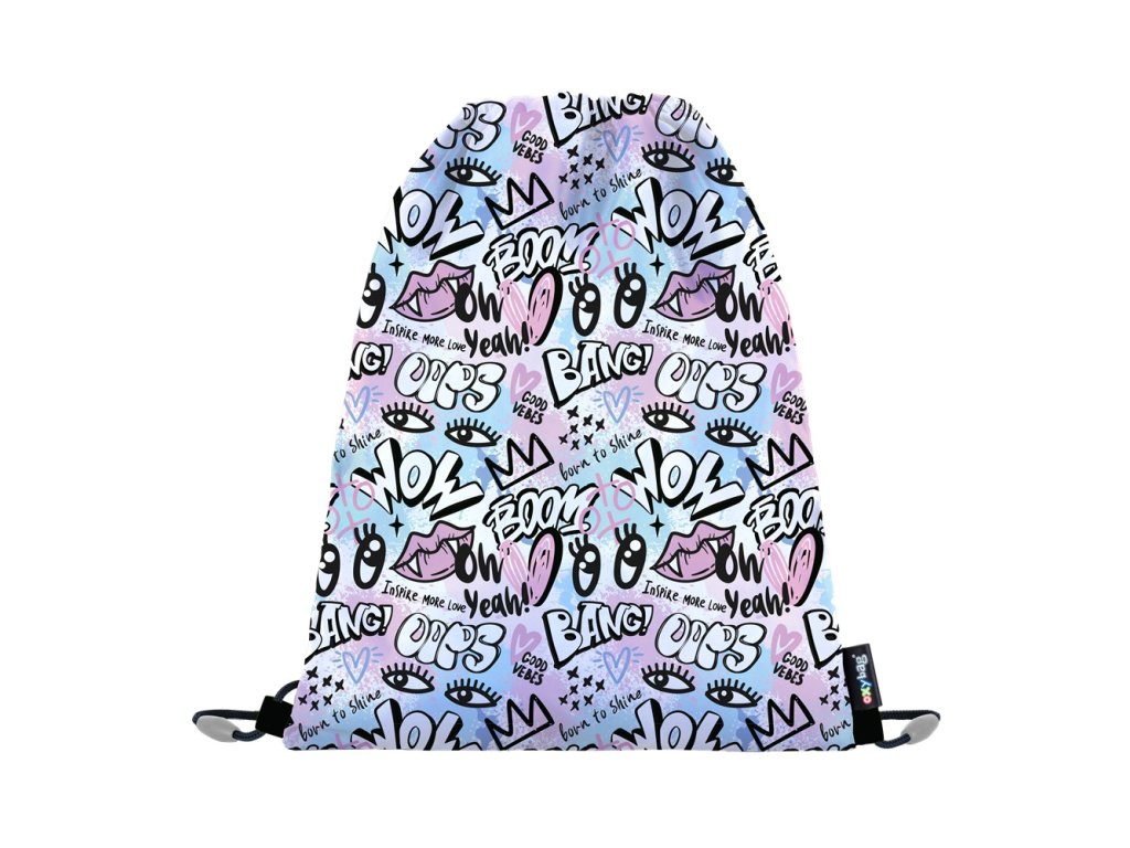 Sáček je ideální na přezůvky, cvičky nebo lehké sportovní oblečení. Díky jednoduchému stažení šňůrek se snadno uzavírá a může se nosit na zádech jako lehký batůžek. Lze ho také připevnit ke školnímu batohu.