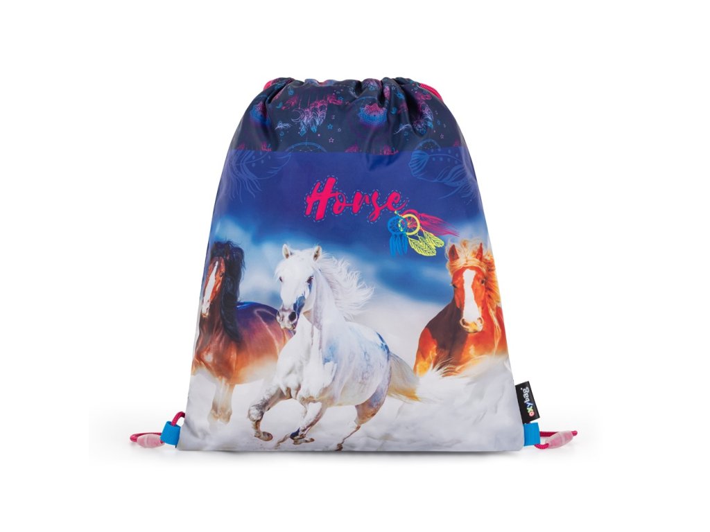 🐴 Sáček na cvičky Oxybag Kůň potěší všechny malé milovnice koní. Krásný motiv s koňskou tématikou je ideální do školy, na tělocvik i na volnočasové aktivity.