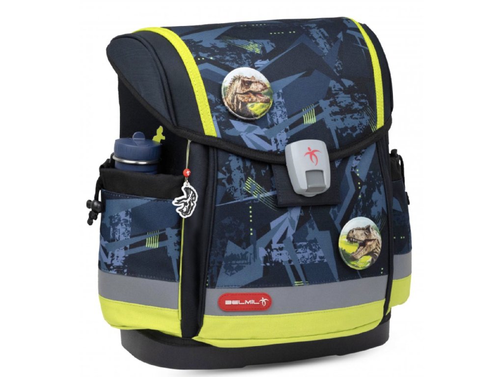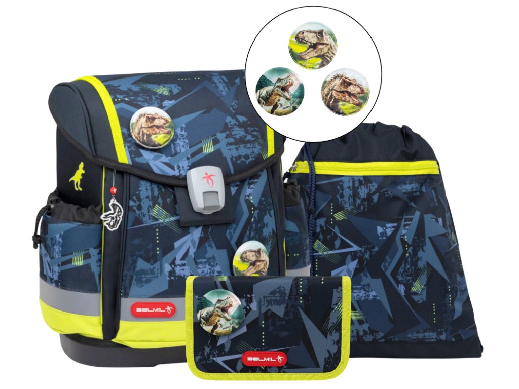 Školní aktovka Belmil Classy Plus T-Rex Lime – ergonomický 3dílný set pro kluky