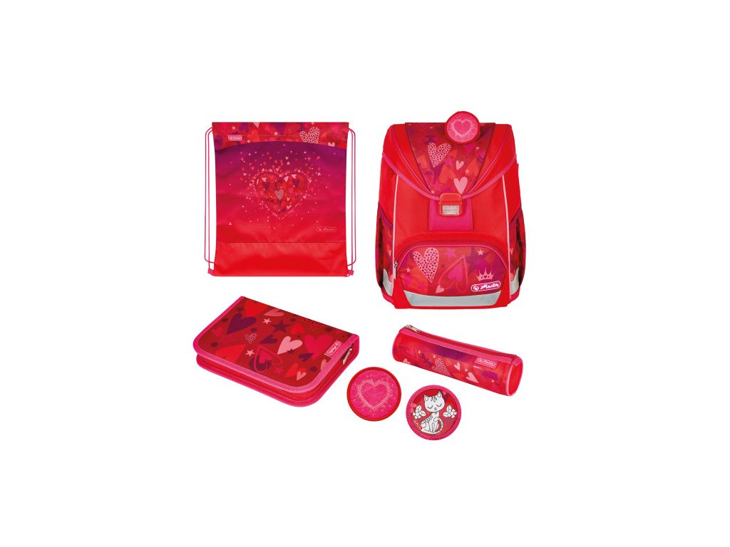 Školní aktovka Herlitz Ultralight Srdce – 3dílný set s penálem a sáčkem