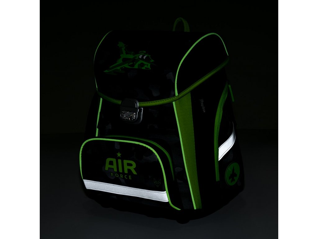 Školní aktovka z řady Premium je anatomicky tvarovaná a zajišťuje tak správné usazení na zádech. Vyztužená záda a vnitřní výztuha udržují stálý tvar batohu. Polstrování je z příjemného prodyšného materiálu, široké měkčené popruhy jsou navrženy tak, aby dokonale přilnuly a rovnoměrně zatížily ramena dítěte. Aktovka se skládá z jedné prostorné komory, kam se pohodlně vejdou všechny školní pomůcky pro děti v 1. a ve 2. třídě. Dno batohu je z pevného materiálu, chrání tím obsah před převržením a vysypáním. Zapínání je na bezpečnostní přezku. Přední kapsička je určena na svačinu, nechybí řada reflexních prvků, díky kterým je aktovka viditelnější.