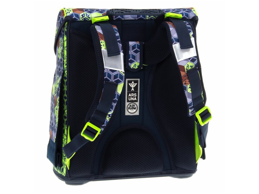 Školní aktovka Ars Una z kolekce Geek, která je určena pro chlapce ve věku 6.-10. let, tedy prvního stupně Základní školy. Aktovka je výjimečná použitými materiály a kvalitním zpracováním. Aktovka má výborně zpracované prodyšné polstrování v bederní oblasti s tzv. systémem Air Flow kdy jsou záda dostatečně odvětrávána.