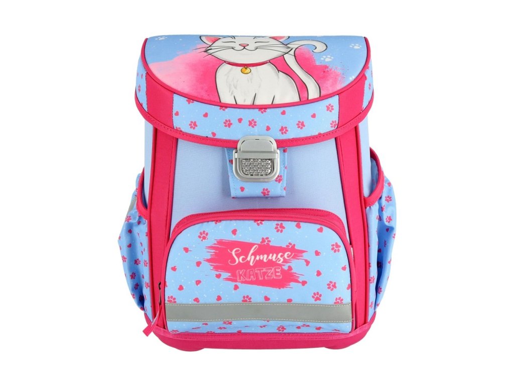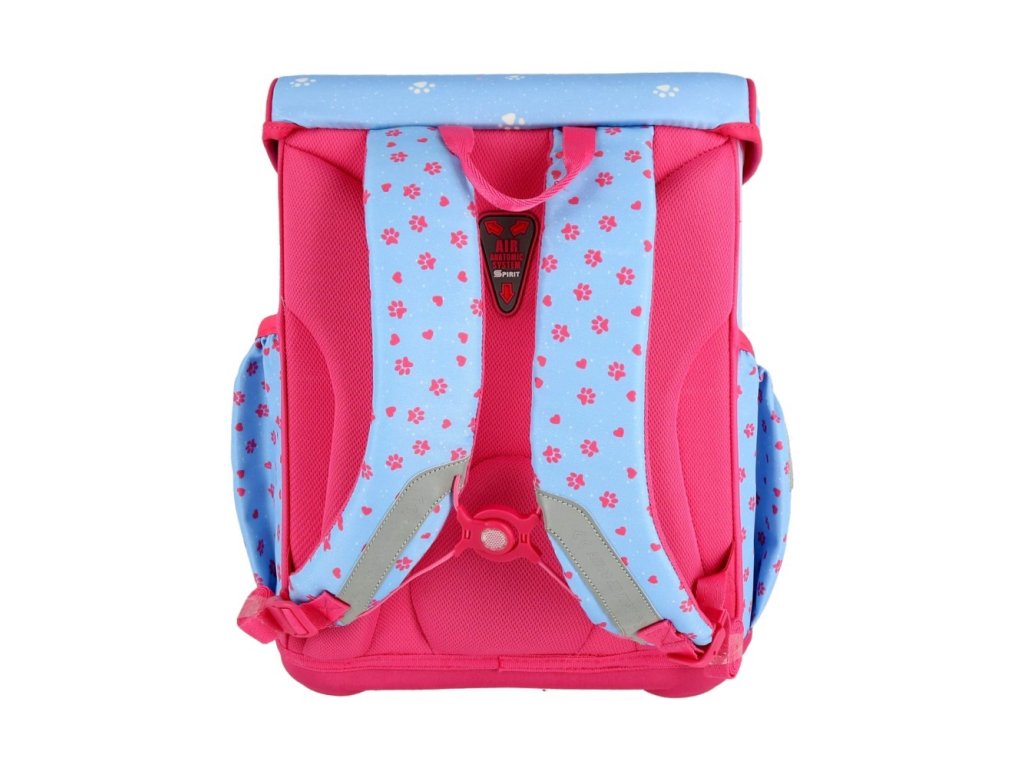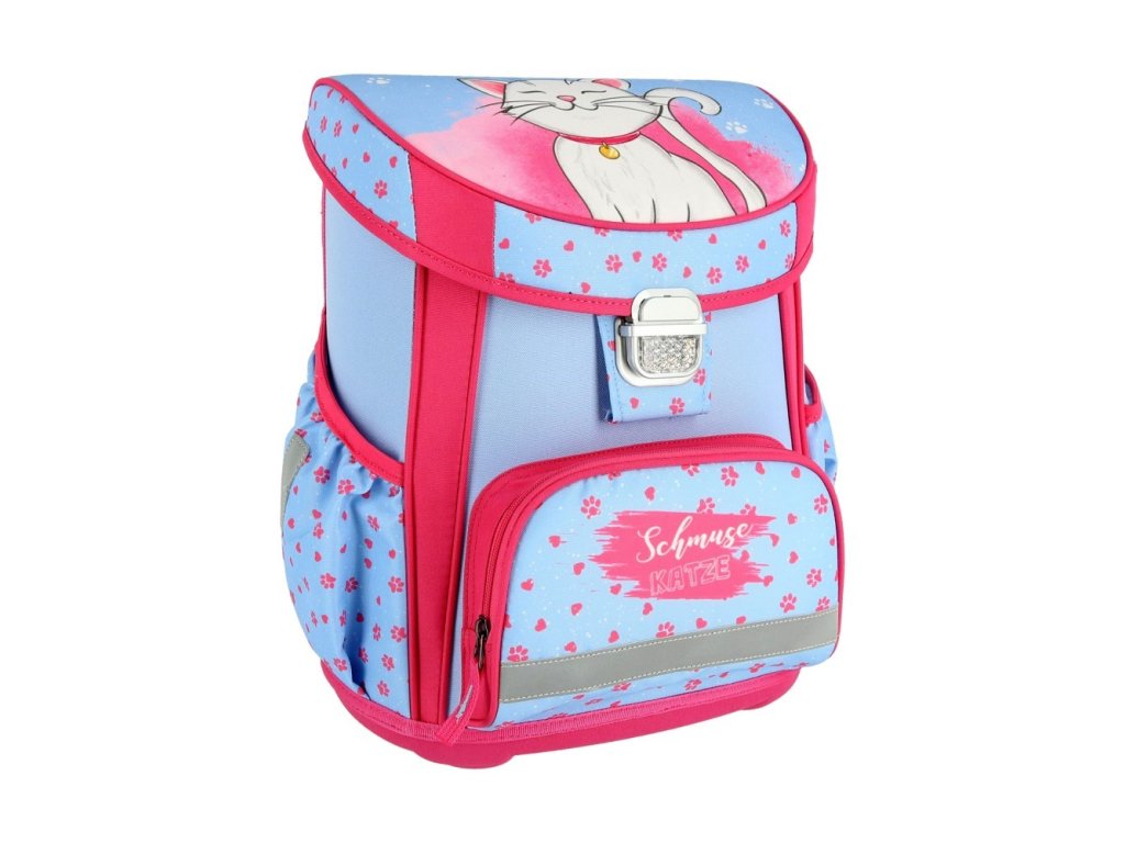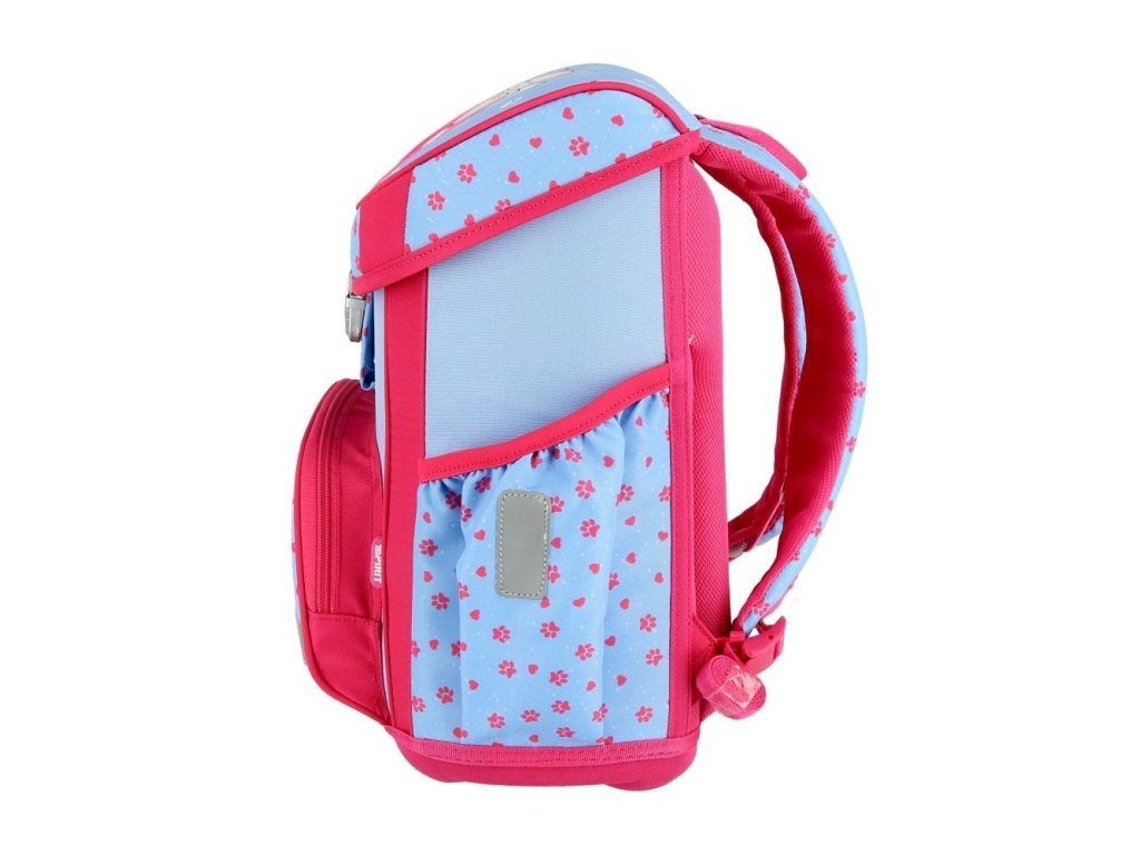 Set obsahuje: školní tašku, kapsu na přezůvky, pouzdro na pera a desky na sešity A4.