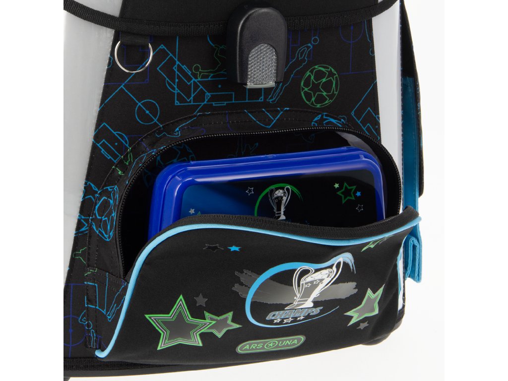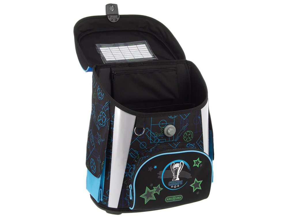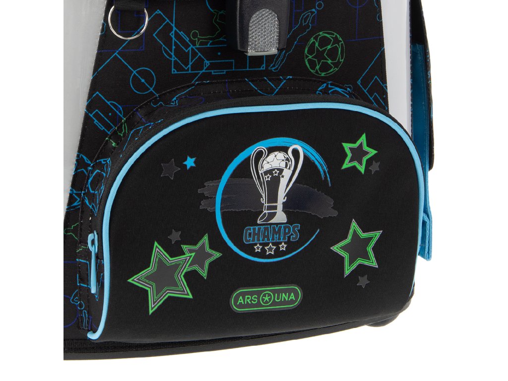 Školní aktovka Ars Una z kolekce Champs (fotbal). Vyniká svým precizním zpracováním a použitými materiály prvotřídní kvality.