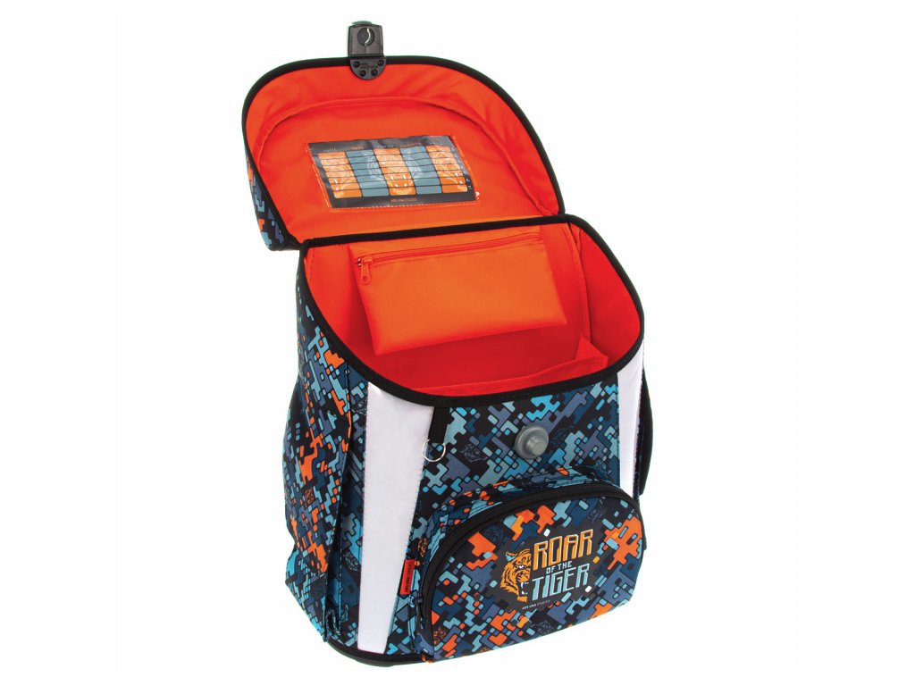 Školní aktovka Ars Una pro prvňáčky z kolekce Roar of the Tiger určená chlapcům ve věku 6 -10 let, tedy prvního stupně Základní školy. Vyniká svým precizním zpracováním a kvalitními použitými materiály. Dostatečné úložné prostory zajistí, aby se do aktovky vlezly veškeré školní potřeby.