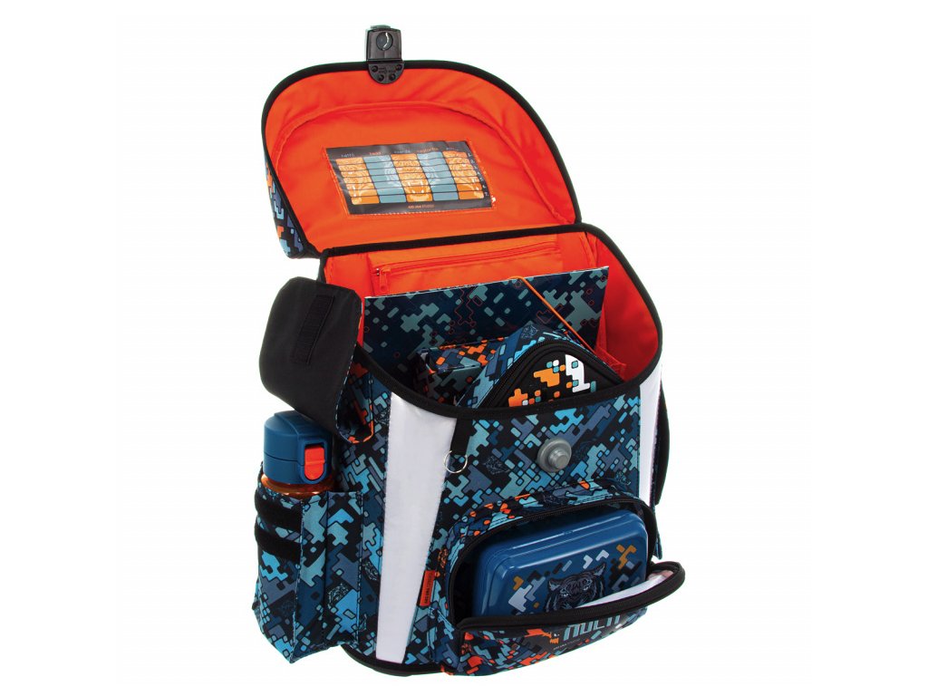 - Nejdokonalejší způsob zavírání systémem Magnetic lock velmi usnadňuje otevírání a zavírání aktovky. Je navržen a doporučen všem prvňáčkům, kteří mnohdy nemají dostatek zručnosti k manipulaci pomocí klasických klipů.
