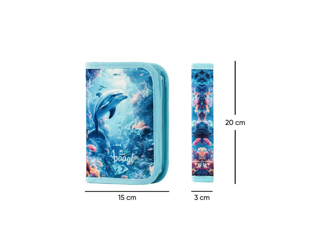 Azurově modrá peněženka Baagl s motivem delfína je ideální pro malé školačky. Má šňůrku na krk s pojistkou, jmenovku a kapsičku na drobné.
