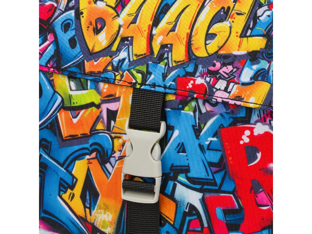 Plastový box na svačinu se street-art motivem. Obsahuje dělicí přepážku a zavírání na zámek.