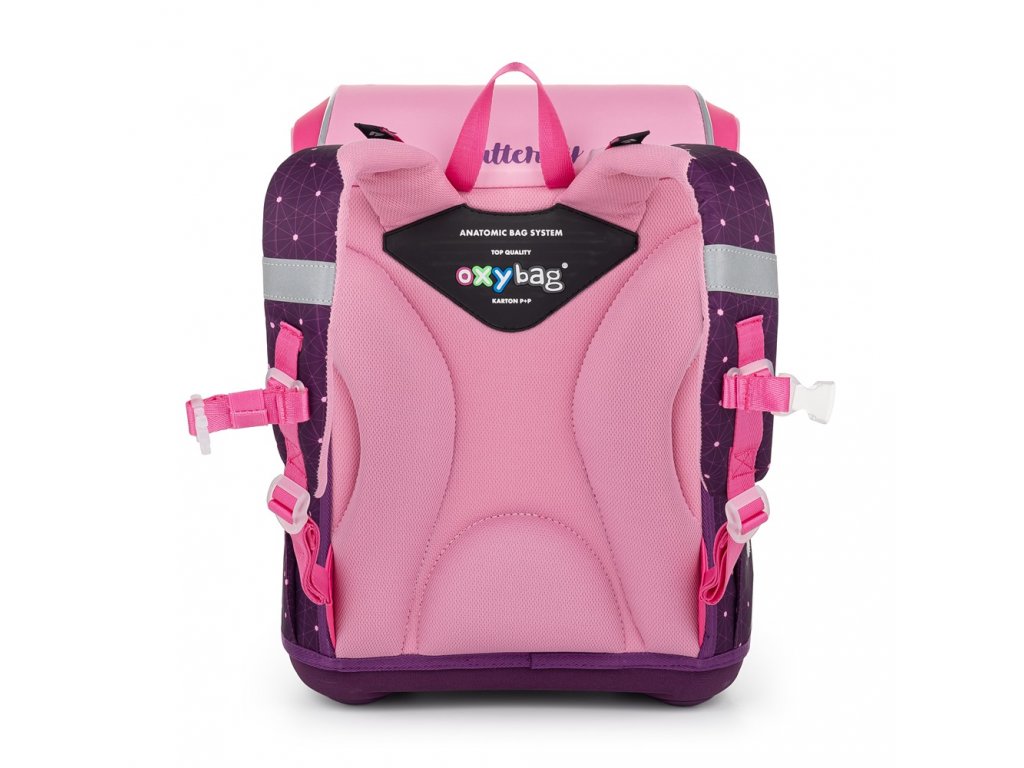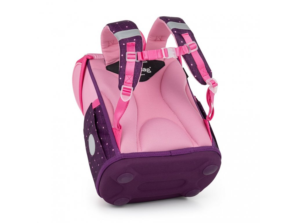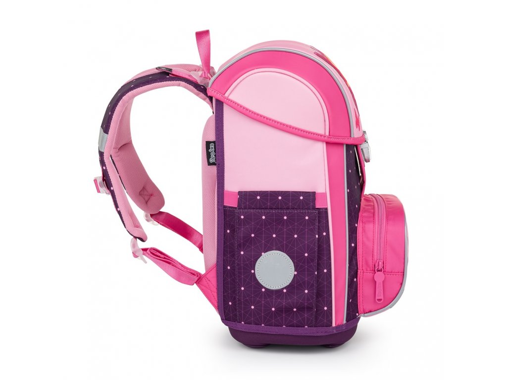 Školní aktovka z řady Premium je anatomicky tvarovaná a zajišťuje tak správné usazení na zádech. Vyztužená záda a vnitřní výztuha udržují stálý tvar batohu. Polstrování je z příjemného prodyšného materiálu, široké měkčené popruhy jsou navrženy tak, aby dokonale přilnuly a rovnoměrně zatížily ramena dítěte. Aktovka se skládá z jedné prostorné komory, kam se pohodlně vejdou všechny školní pomůcky pro děti v 1. a ve 2. třídě. Dno batohu je z pevného materiálu, chrání tím obsah před převržením a vysypáním. Zapínání je na bezpečnostní přezku. Přední kapsička je určena na svačinu, nechybí řada reflexních prvků, díky kterým je aktovka viditelnější.