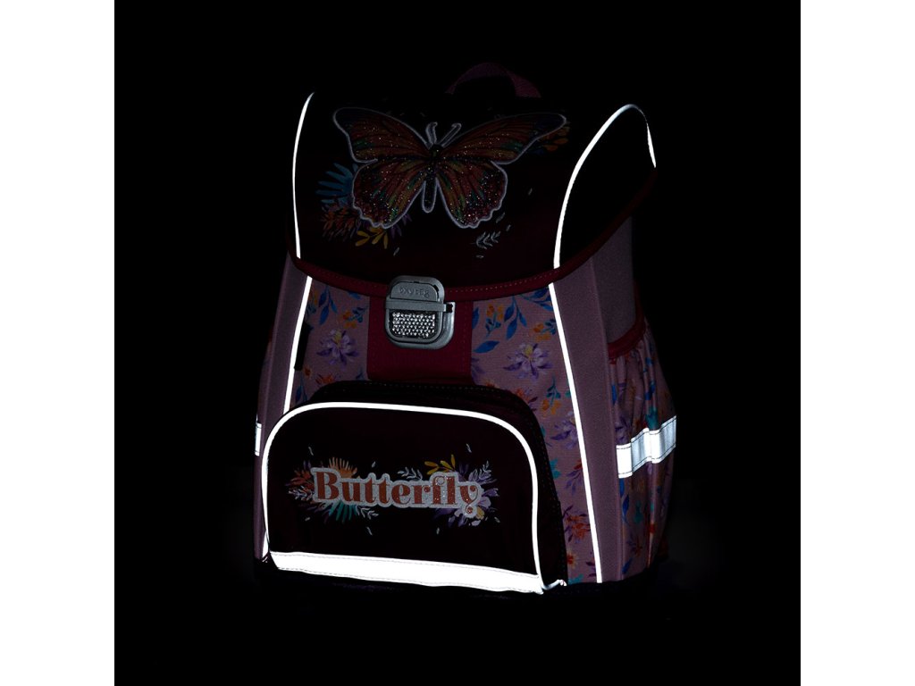 Školní aktovka z řady Premium je anatomicky tvarovaná a zajišťuje tak správné usazení na zádech. Vyztužená záda a vnitřní výztuha udržují stálý tvar batohu. Polstrování je z příjemného prodyšného materiálu, široké měkčené popruhy jsou navrženy tak, aby dokonale přilnuly a rovnoměrně zatížily ramena dítěte. Aktovka se skládá z jedné prostorné komory, kam se pohodlně vejdou všechny školní pomůcky pro děti v 1. a ve 2. třídě. Dno batohu je z pevného materiálu, chrání tím obsah před převržením a vysypáním. Zapínání je na bezpečnostní přezku. Přední kapsička je určena na svačinu, nechybí řada reflexních prvků, díky kterým je aktovka viditelnější.