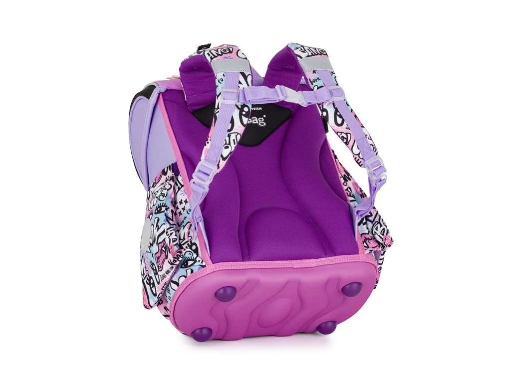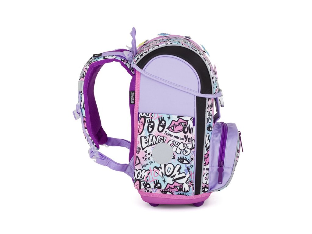 Dno aktovky je z pevného materiálu, který chrání obsah před převržením a vysypáním. Zapínání je řešeno bezpečnostní kovovou přezkou s reflexní odrazkou, která zvyšuje viditelnost dítěte na cestě do školy.
