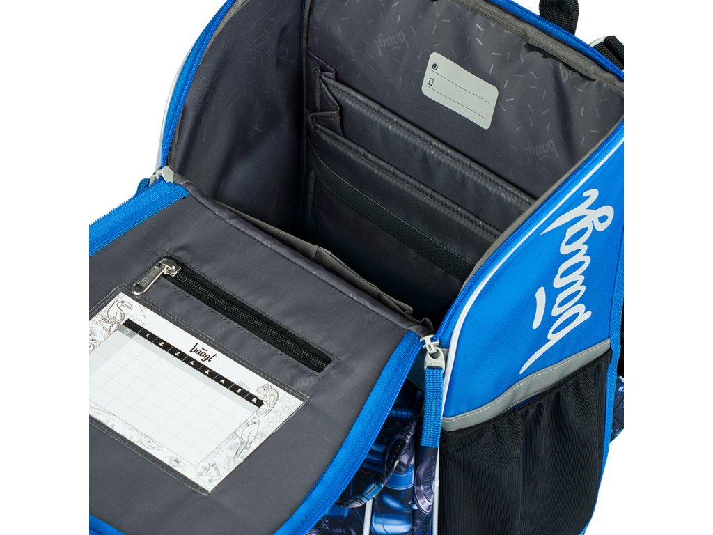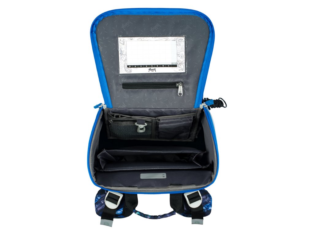🗂️ Uvnitř organizér, gumička na učebnice a kapsa na rozvrh