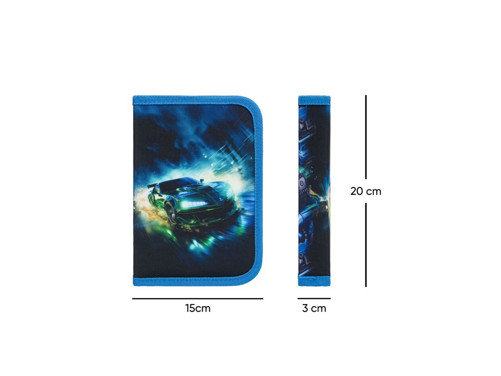 ✏️ Jednopatrový penál Závodní auto – se dvěma chlopněmi, uzavíratelný kvalitním zipem YKK (bez náplně)
