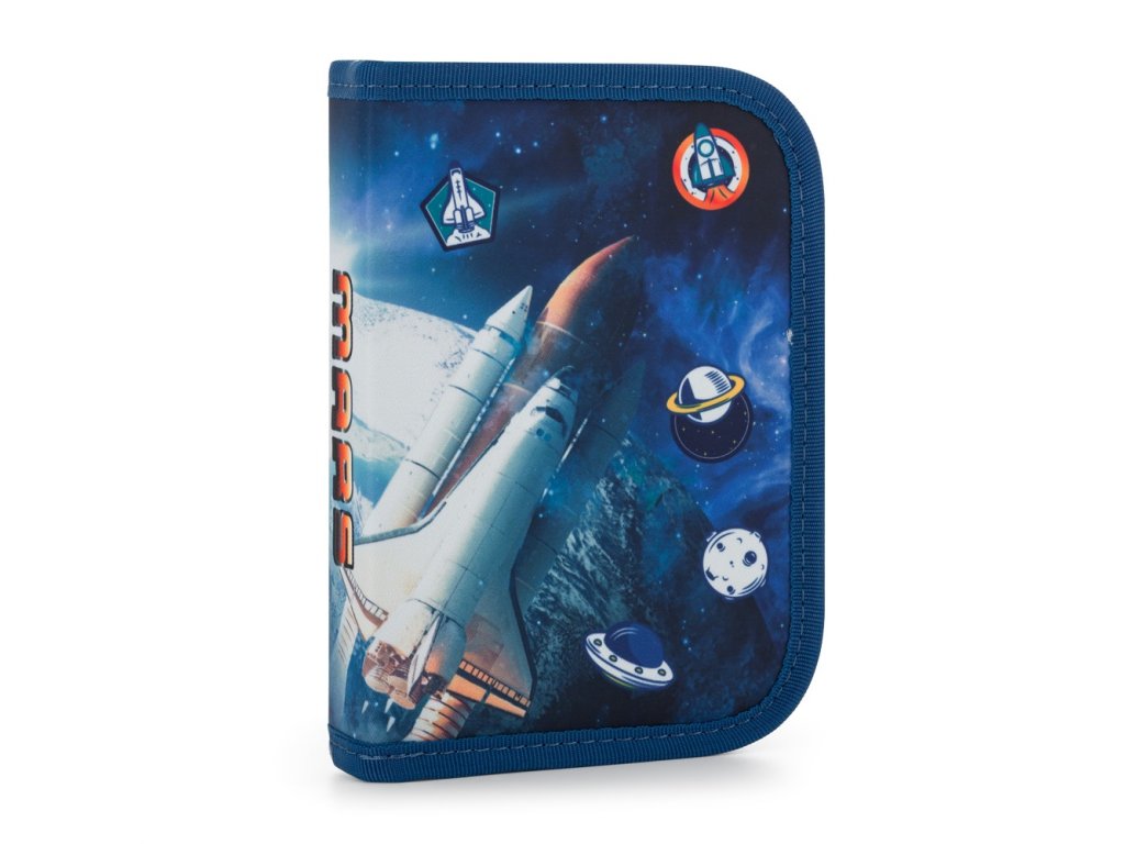 🖊 Penál – jednopatrový, se dvěma chlopněmi a gumovými poutky (bez náplně), průhledná kapsa na rozvrh.