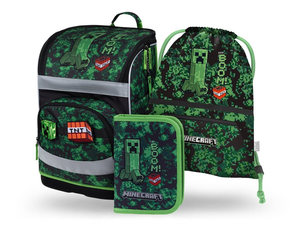 Školní set Baagl Zippy Plus Minecraft Boom je ideální výbava pro první školní roky. Obsahuje ergonomickou školní aktovku, praktický penál a sáček na přezůvky ve stylovém designu inspirovaném populární počítačovou hrou Minecraft.