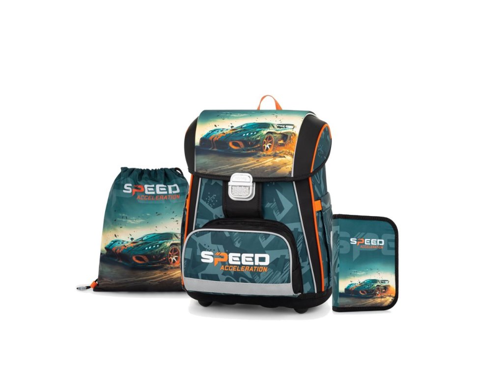 Školní set Oxybag PREMIUM Auto 2024 – ergonomická aktovka, penál a sáček