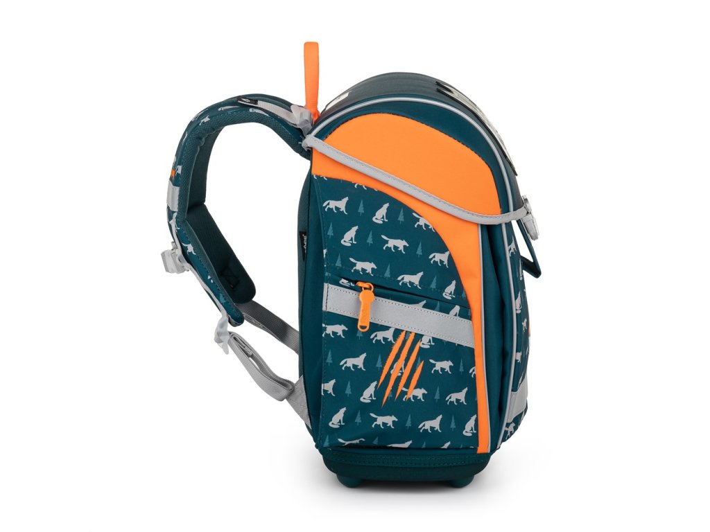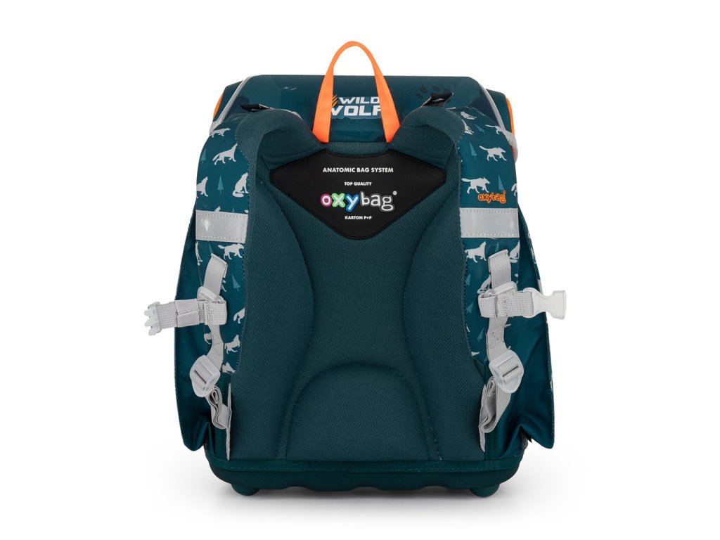 Školní set Oxybag PREMIUM LIGHT Vlk je ideální volbou pro prvňáčky. Aktovka váží pouhých 970 g a je vybavena anatomicky tvarovanými zády, měkčenými ramenními popruhy a hrudním pásem pro rovnoměrné rozložení váhy. Díky reflexním prvkům na všech stranách je zajištěna bezpečnost dítěte i za zhoršené viditelnosti. Jednoduché magnetické zapínání umožňuje snadné otevírání a zavírání aktovky. Součástí setu je také penál a sáček na přezůvky, vše sladěné v motivu vlka, který si děti zamilují.
