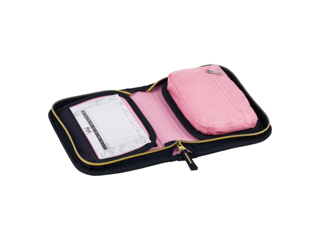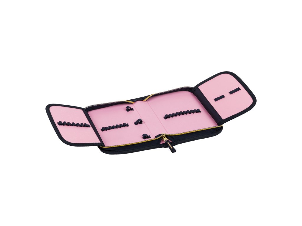 Klasický jednopatrový penál se dvěma chlopněmi pro přehledné uložení psacích potřeb.