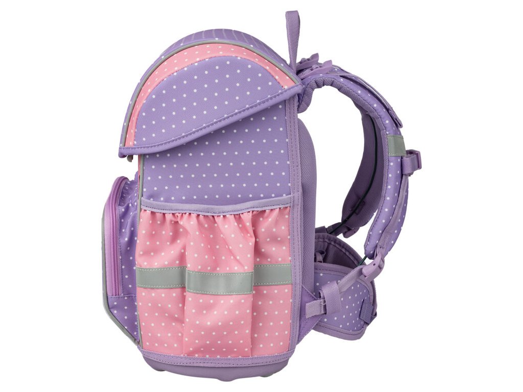 Motiv Fairy osloví všechny malé princezny – růžové a fialové tóny v kombinaci s elegantní vílou, třpytivé detaily, chlupatý přívěsek a vyměnitelné aplikace. Děti si tak mohou vzhled aktovky měnit podle nálady – každý školní den může být originální a kouzelný.