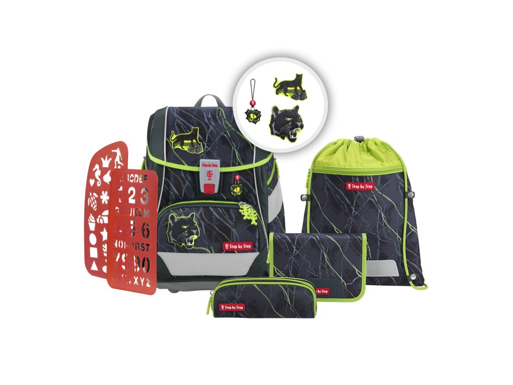 6dílný set obsahuje: aktovku, plný penál, pouzdro, pytlík na cvičební úbor nebo přezůvky, šablony a vyměnitelné obrázky Magic Mags