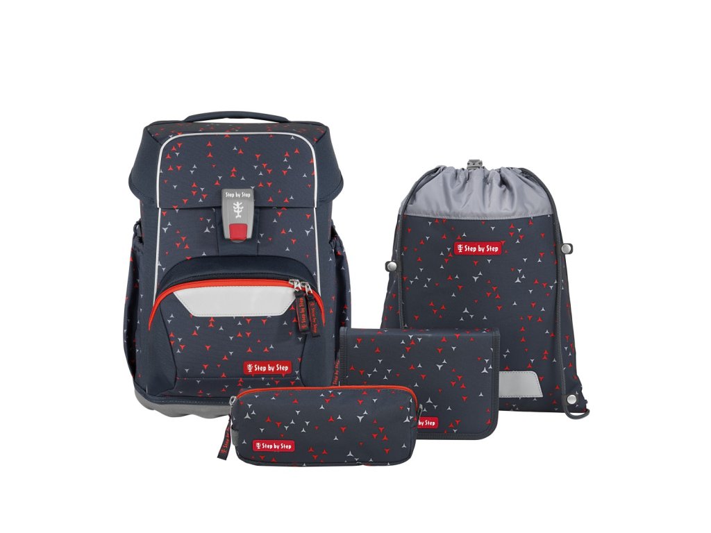 Školní aktovka pro prvňáčky – 4 dílný set, Step by Step BASIS Anthrazit Triangles