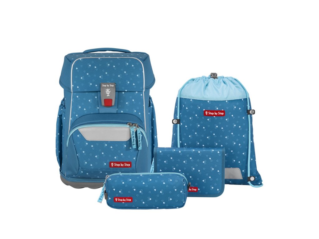 Školní aktovka pro prvňáčky – 4 dílný set, Step by Step BASIS Blue Hearts