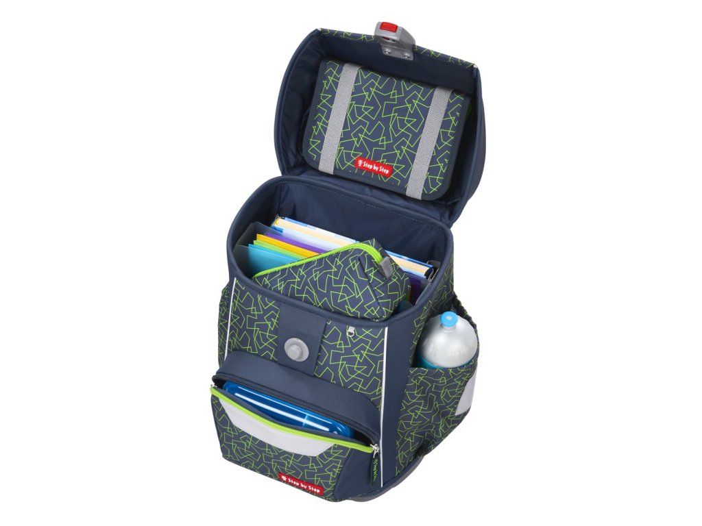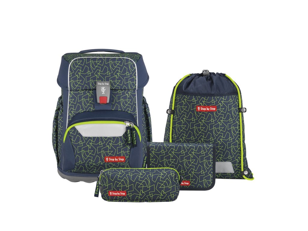 Školní aktovka pro prvňáčky – 4 dílný set, Step by Step BASIS Green Geometric, AGR