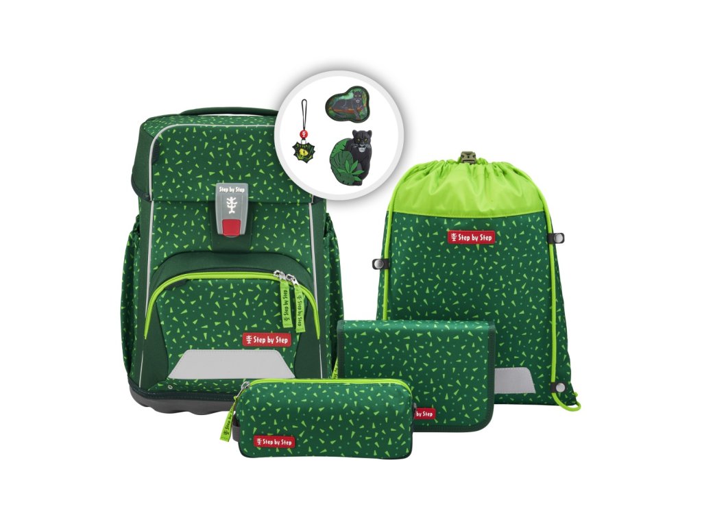 Školní aktovka Step by Step BASIS Green Graphics – 4dílný set + DÁREK ZDARMA