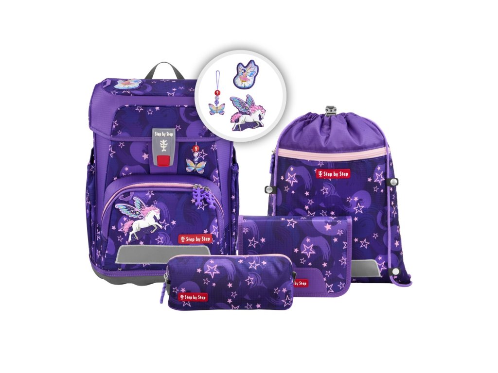 🦄💜 Školní aktovka Step by Step CLOUD Pegasus Liv – 5dílný set je perfektní volbou pro všechny malé princezny, které milují jemné motivy a pohodlné nošení. Ergonomický tvar, nízká hmotnost a nádherný motiv Pegase zaručí, že každý školní den bude o něco kouzelnější.