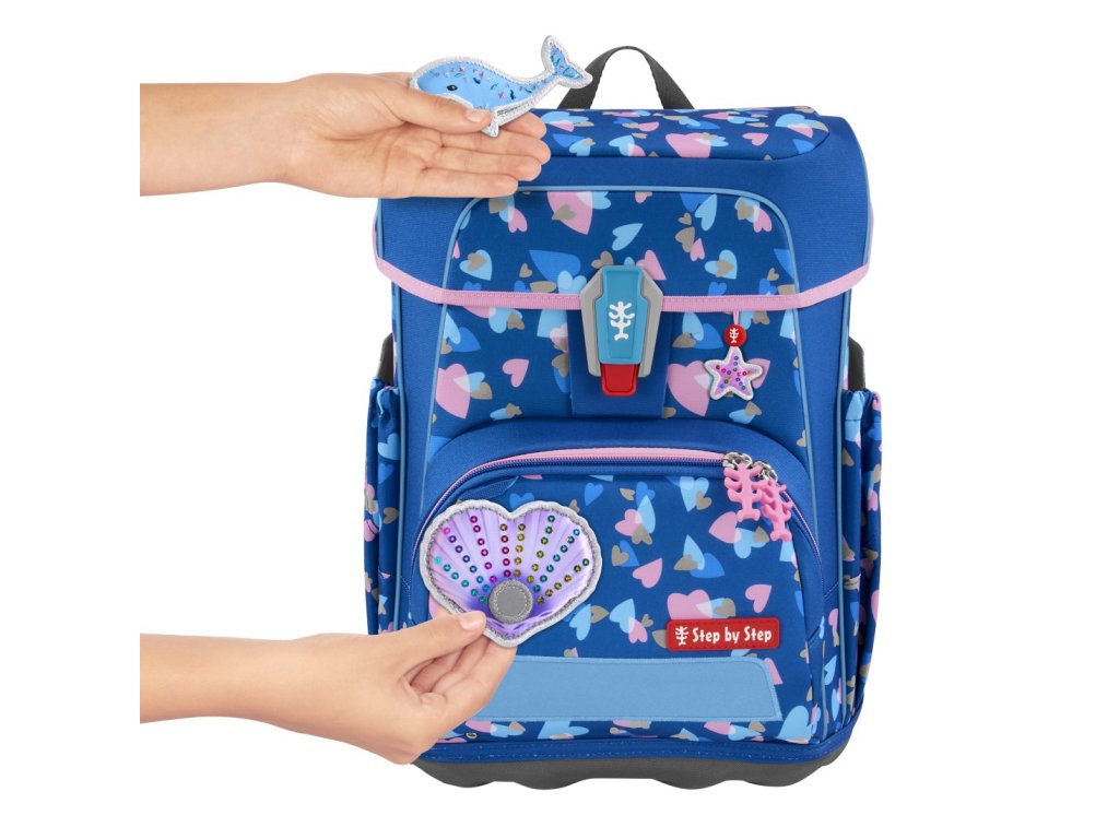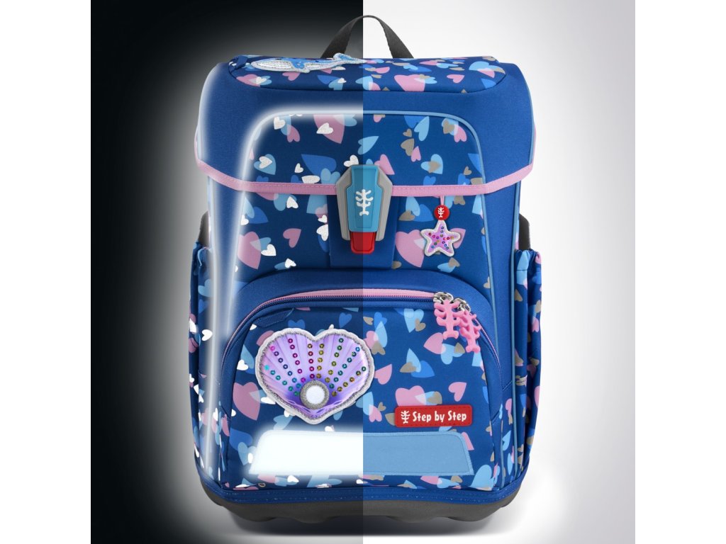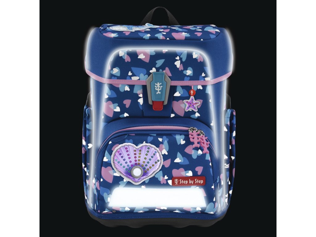 Školní aktovka Step by Step Cloud REFLECT Seashell Pearl je lehká ergonomická aktovka pro prvňáčky v 5dílném setu. Speciální edice REFLECT s reflexním potiskem zajišťuje lepší viditelnost, aktovka má AGR certifikát, roste s dítětem a nabízí prodlouženou záruku 4 roky.