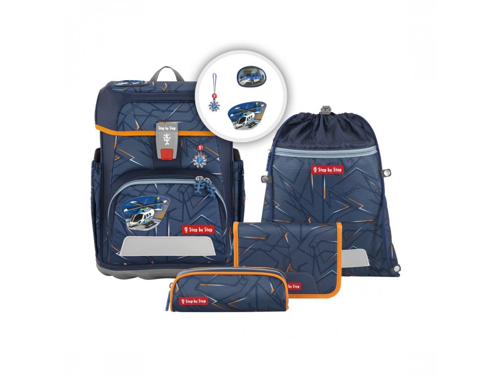 Školní aktovka CLOUD pro prvňáčky - 5dílný set, Step by Step Helicopter Sam + dárek ZDARMA