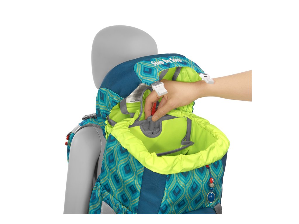 - dotahovací pásky na ramenním popruhu, slouží k dokonalému přilnutí batohu k zádům dítěte