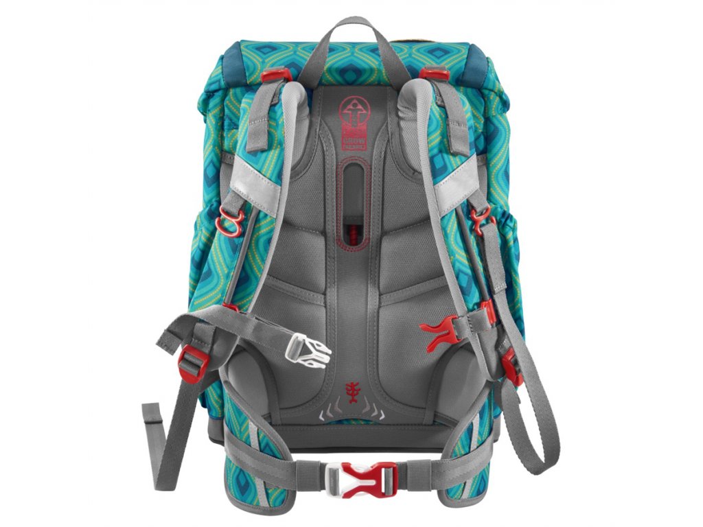 - pomocí otočného mechanismu uvnitř batohu, zajišťujete přesné nastavení ramenních popruhů přímo na zádech dítěte od 1. Do 4. třídy
