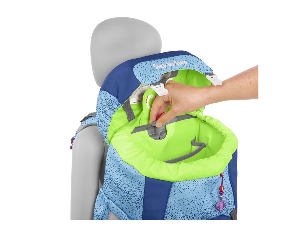 - dotahovací pásky na ramenním popruhu, slouží k dokonalému přilnutí batohu k zádům dítěte