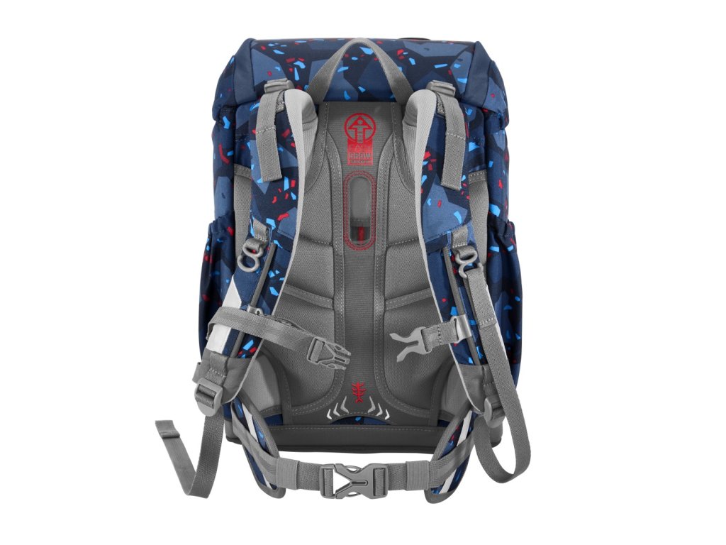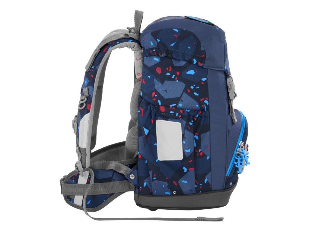 Batoh je doplněn o reflexní prvky ze všech stran, velkou hlavní komoru, kapsy na láhev i svačinu a praktickou kapsu na těžké učebnice. -