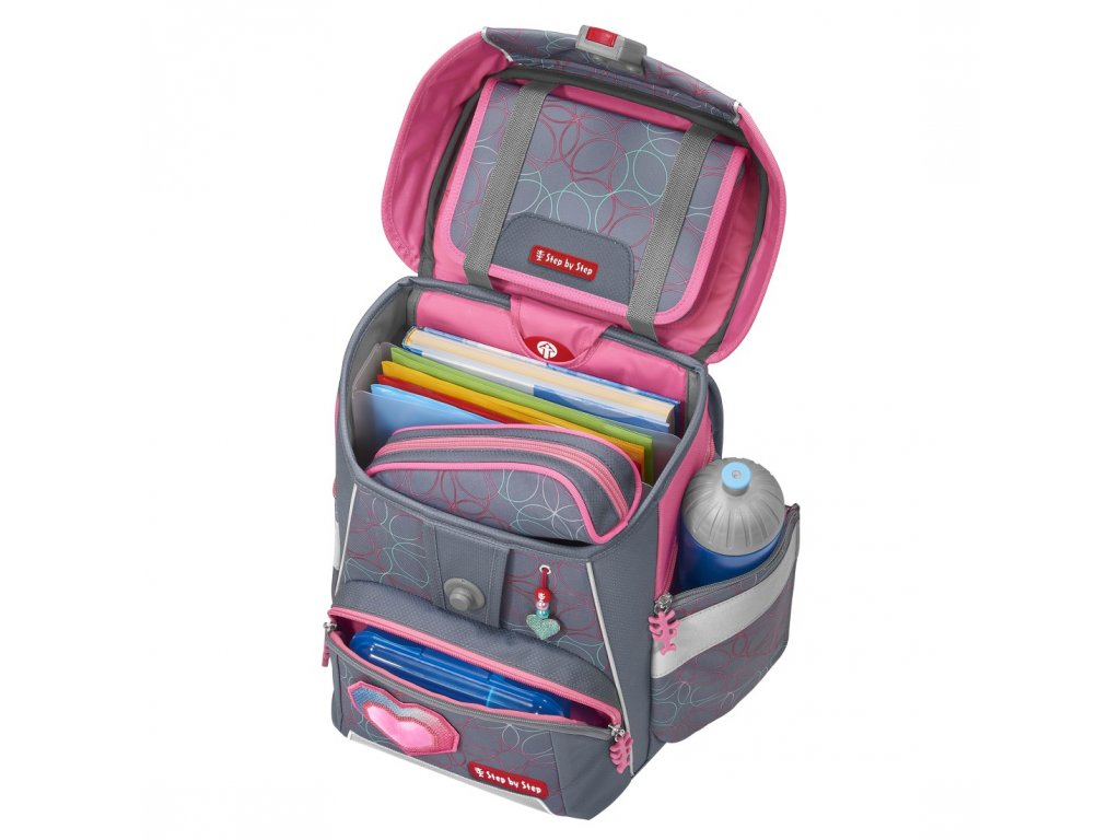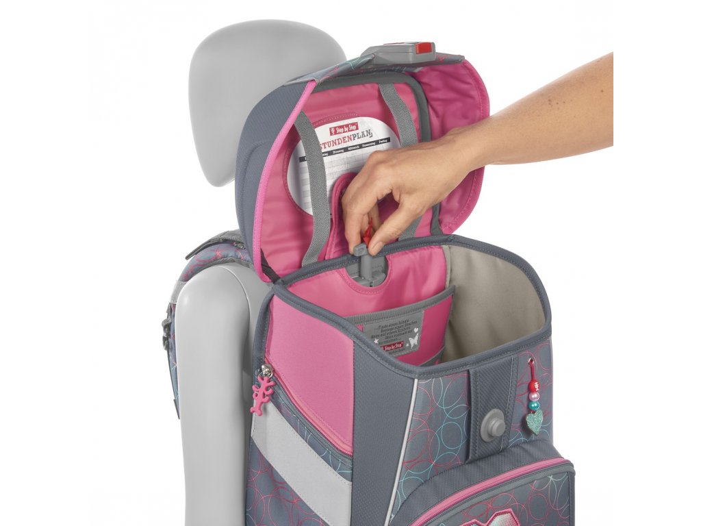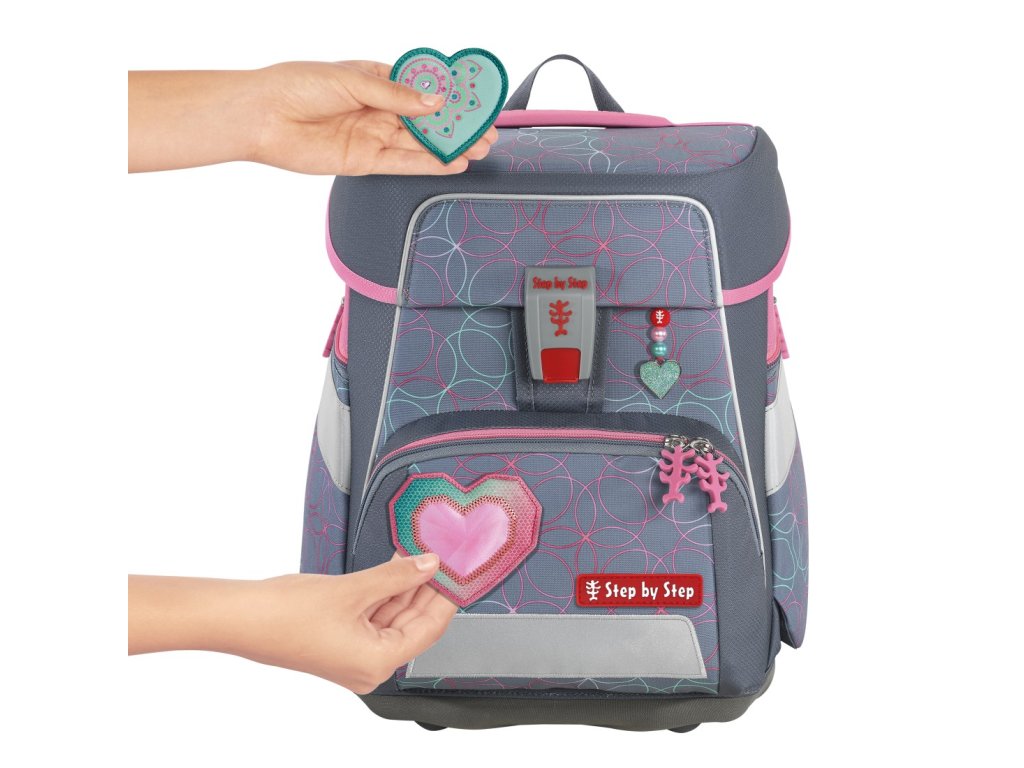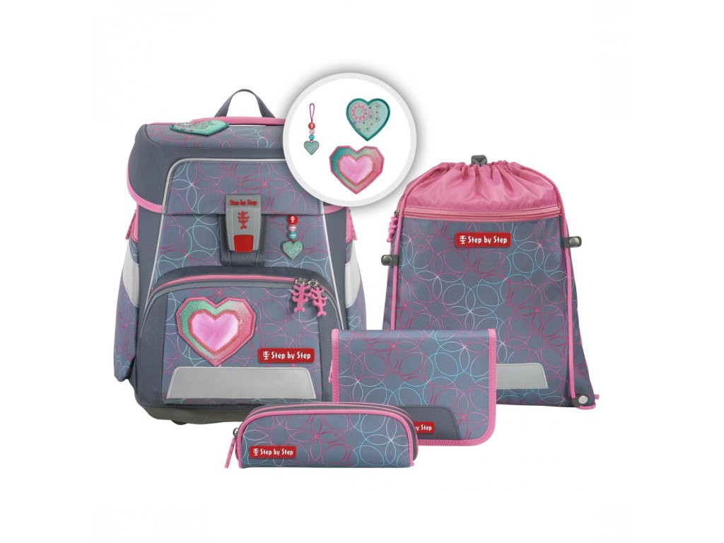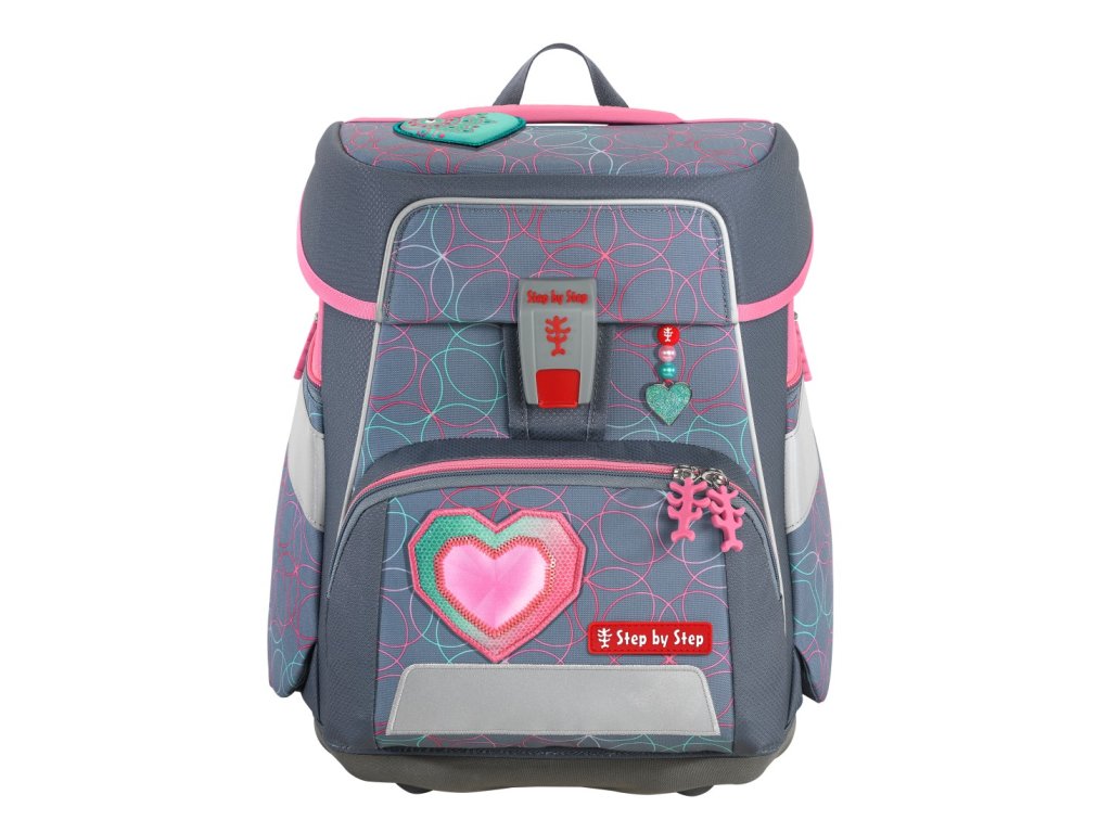 Školní aktovka SPACE pro prvňáčky - 5dílný set, Step by Step Glitter Heart Hazle, certifikát AGR + dárek