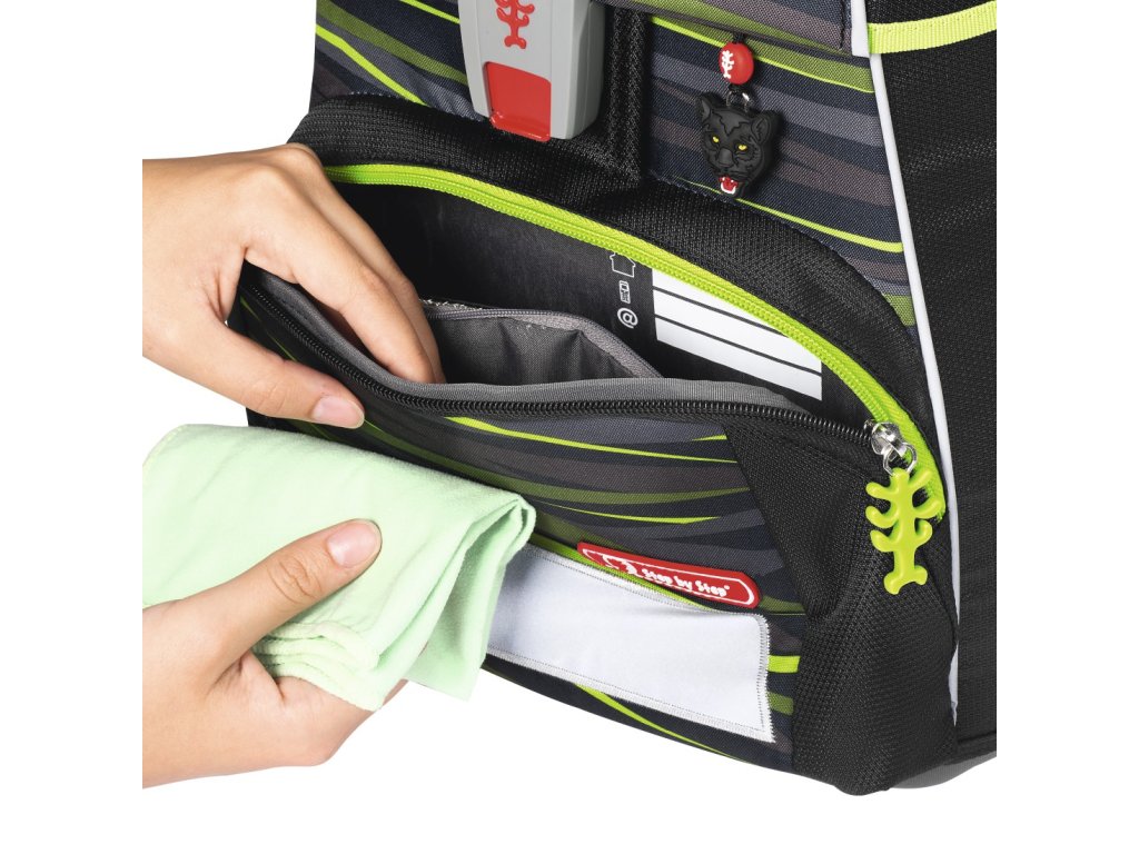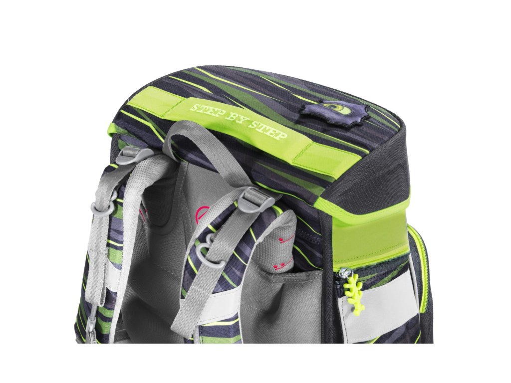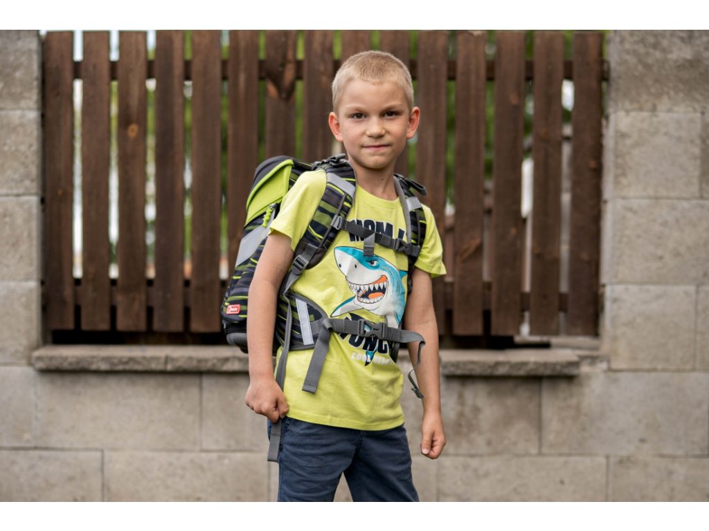 - dotahovací pásky na ramenním popruhu, slouží k dokonalému přilnutí aktovky k zádům dítěte